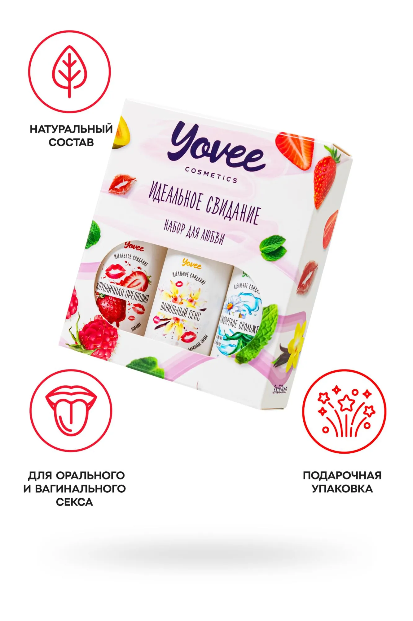 —Набор гелей-смазок Yovee для любви (721004+721012+721054), вкус (клубн+ваниль) + увл (алоэ), 3х50 мл