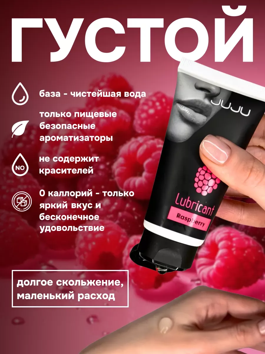 Съедобный лубрикант со вкусом малины отлично подойдет для любого вида близости. Водная основа смазки позволяет разнообразить интимную жизнь, обеспечивая продолжительное шелковистое скольжение. Лубрикант можно использовать с любыми интим игрушками, а также с презервативами. Состав: вода очищенная, глицерин, гидроксиэтилцеллюлоза, ароматизатор пищевой, бензоат натрия, сорбат калия, пропиленгликоль, сахаринат натрия, лимонная кислота, объем – 50 мл, производитель – JuJu (Россия). срок годности-3 года.