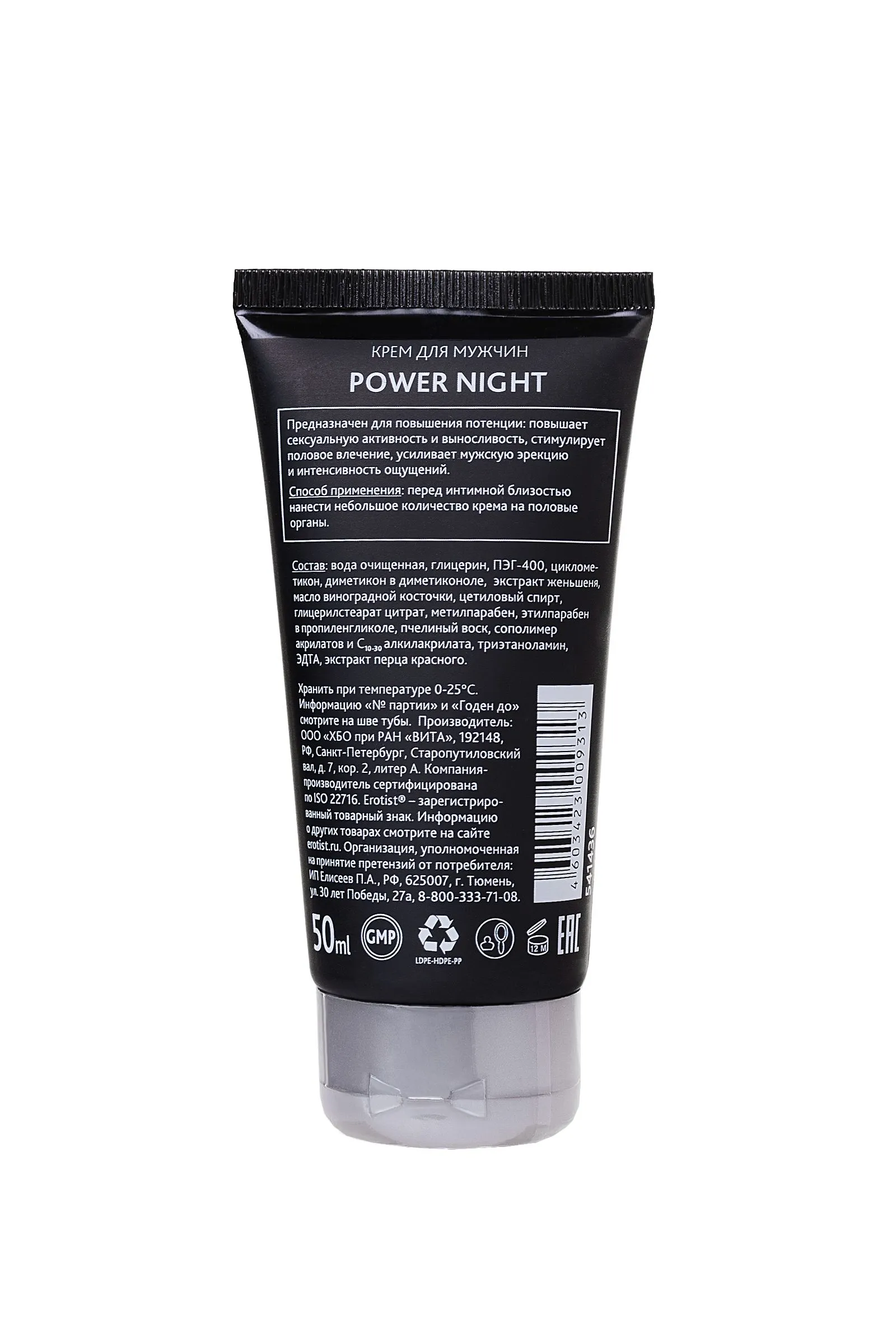 —Крем Erotist для мужчин POWER NIGHT, для повышения потенции, 50 мл