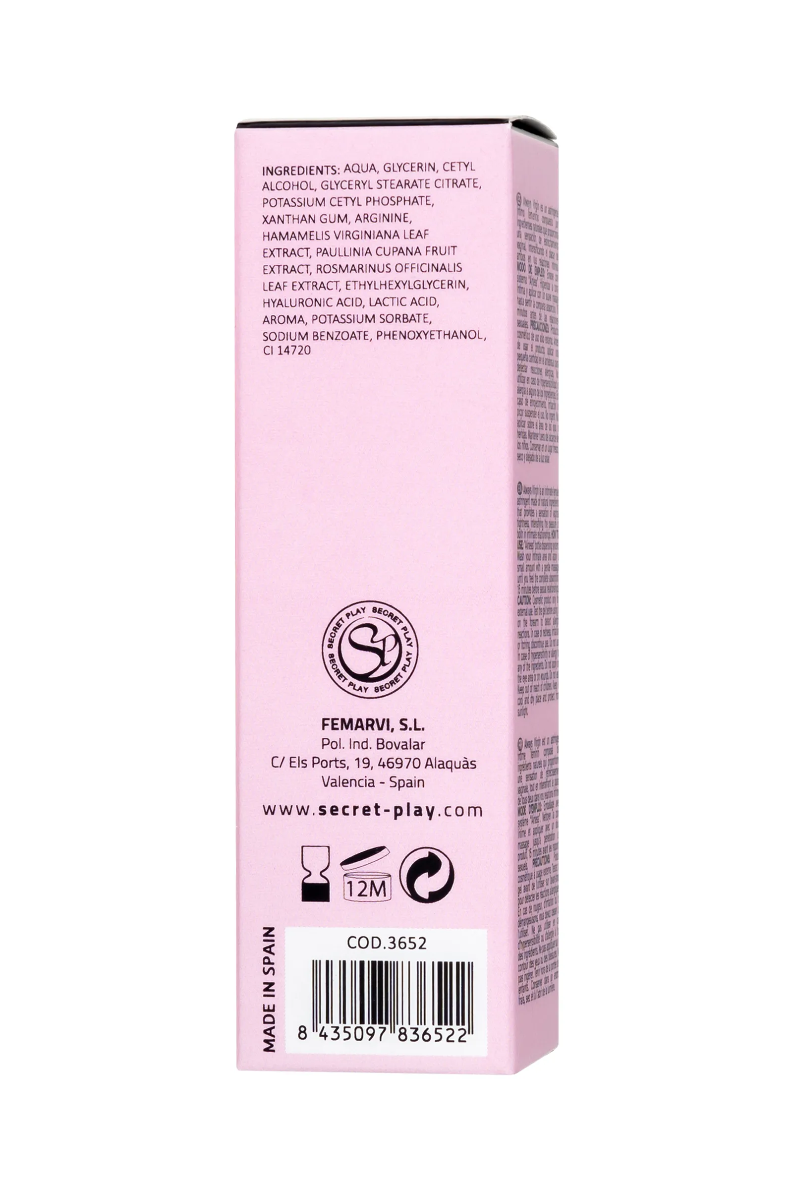 Гель для тесного контакта (эффект девственницы) ALWAYS VIRGIN - INTIMATE ASTRINGENT 15 ML Secret Play приготовил волшебное зелье, способное подарить партнерам максимально тесный контакт и эффект “первого раза”. Сужающий гель для женщин Always Virgin – Intimate Astringent способен подарить ощущение гладкого и тугого входа. Натуральные ингредиенты геля создают эффект девственницы благодаря вяжущим и сужающим влагалище свойствам. За 15 минут до полового акта нанесите гель на стенки влагалища и вотрите легкими массирующими движениями до полного впитывания. Гель для тесного контакта Always Virgin полюбился многим парам – он освежает интимные отношения и усиливает удовольствие для обоих партнеров. Емкость: 15 мл. Страна бренда Испания Состав: вода, глицерин, цетиловый спирт, глицерилстеарат цитрат, цетилфосфат калия, ксантановая камедь, аргинин, экстракт листьев гамамелиса виргинского, экстракт плодов Paullinia Cupana, экстракт листьев розмарина лекарственного, этилгексилурли. Молочная кислота, ароматизатор, сорбат калия, бензоат натрия, феноксиэтанол, CI 14720 Меры предосторожности: Косметический продукт только для наружного применения. Не используйте при гиперчувствительности или аллергии на какие-либо ингредиенты. В случае раздражения прекратить использование. Не наносите на глаза или на раны. Не съедобен. Храните в недоступном для детей месте. Держите в прохладном, сухом месте, вдали от солнечных лучей.