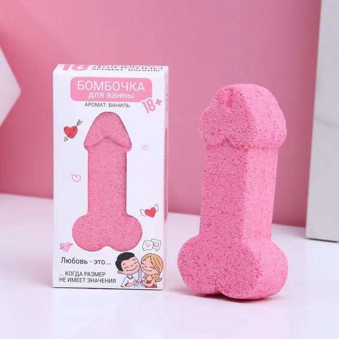 Бурлящая бомбочка в виде члена разнообразит прием ванны. Сувенир в виде мужского достоинства 8 см в длину и весом 60 г взбудоражит фантазию, а сладкий аромат подарит приятные ощущения.