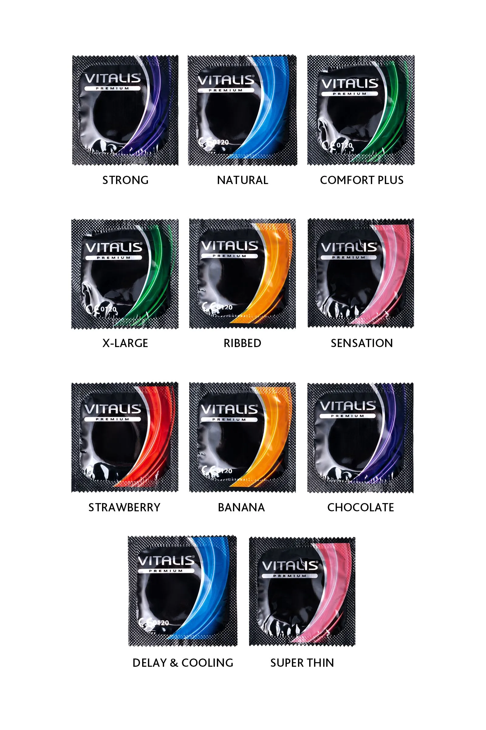 Презервативы VITALIS MIX pack. В одной упаковке микс из 11 видов презервативов: ультратонкий, с пупырышками (стимулирующие с точками и кольцами), цветной с ароматом шоколада, цветной с ароматом клубники, цветной с ароматом банана, анатомической формы, охлаждающий, классический, ребристый, сверхпрочный, увеличенного размера 57мм. Тонкие презервативы VITALIS с обильным количеством смазки - это стандарт немецкого качества. Прочные презервативы обеспечивают надежную защиту от заболеваний передающихся половым путем и от нежелательной беременности. Контрацептивы стандартного размера из натурального латекса с мягкой смазкой на силиконовой основе не вызывает аллергических реакций и способствует большему удовольствию. Сет презервативов VITALIS Mix разработан специально для тех, кто хочет получать от сексуальной жизни все и даже немного больше! Разнообразие выбора дает возможность пробовать для себя новые ощущения.Дайте волю своей фантазии!VITALIS PREMIUM - доверяя, получай удовольствие! Ширина: 53mm Длина: 180mm Толщина: 0.07mm Смазка: силикон Форма: цилиндрическaя Качество: ISO 4074:2002