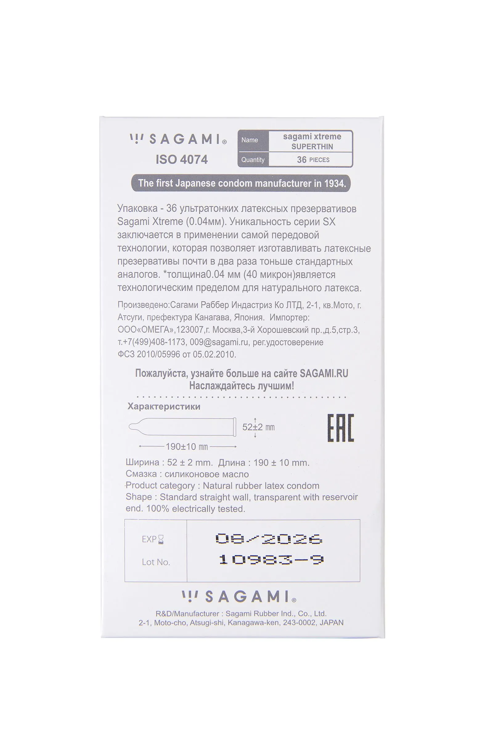 —Презервативы Sagami, xtreme, 0.04, латекс, 19 см, 5,4 см, 36 шт.