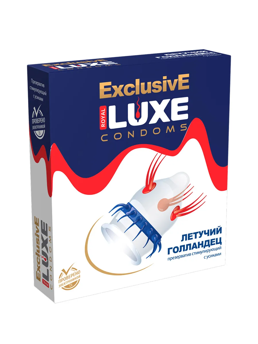 Luxe Exclusive "Летучий Голландец" - это надёжный и проверенный электроникой презерватив с торчащими в разные стороны усиками. Головка презерватива снабжена двумя рядами эластичных усиков, которые направлены в разные стороны. Они обеспечат дополнительную стимуляцию партнерши, но и Вас это не разочарует - эти усики оказывают давление и на головку члена, делая оргазм ярким и насыщенным. Попробуйте Luxe Летучий Голландец и насладитесь отличным качеством и новыми ощущениями.