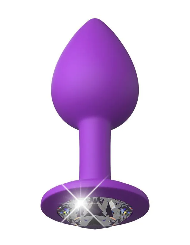 Анальная пробка малого размера со стразом от бренда Pipedream сделана из бархатистого силикона фиолетового цвета. Благодаря каплевидной форме с зауженным кончиком использовать пробку будет комфортно даже новичкам. Поверхность пробки гладкая, поэтому она будет беспрепятственно скользить внутри, вызывая приятные ощущения от стимуляции. Игрушку можно надежно удерживать внутри за счет ее длинной и тонкой ножки. На конце пробки есть широкое основание с пикантным стразом, которое гарантирует безопасность во время игры.