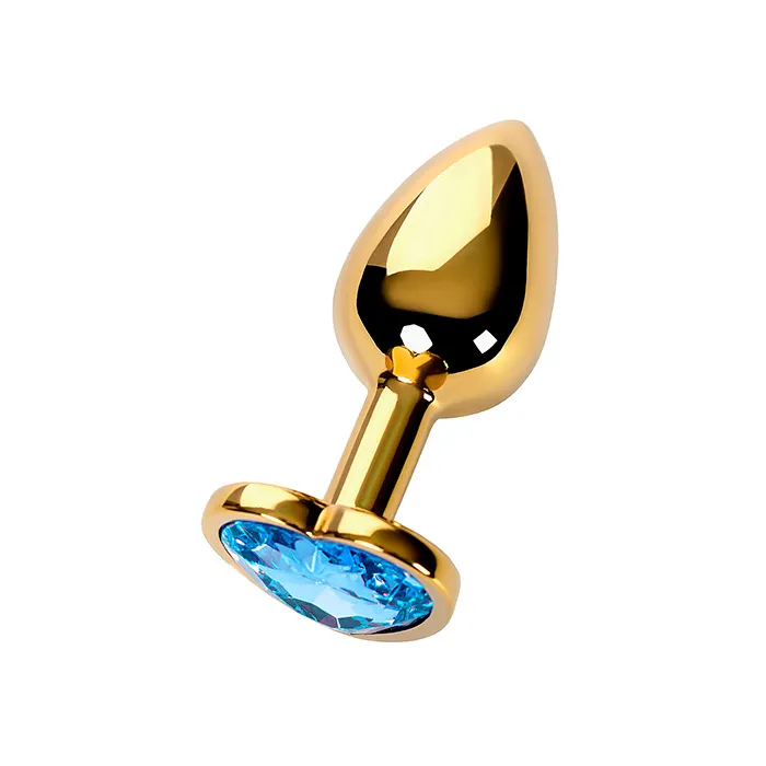 Металлическая блестящая золотистая анальная пробка от Pink Rabbit с переливающимся фиолетовым кристаллом в основании. Прелестная игрушка для разнообразия любовных игр и ласк.