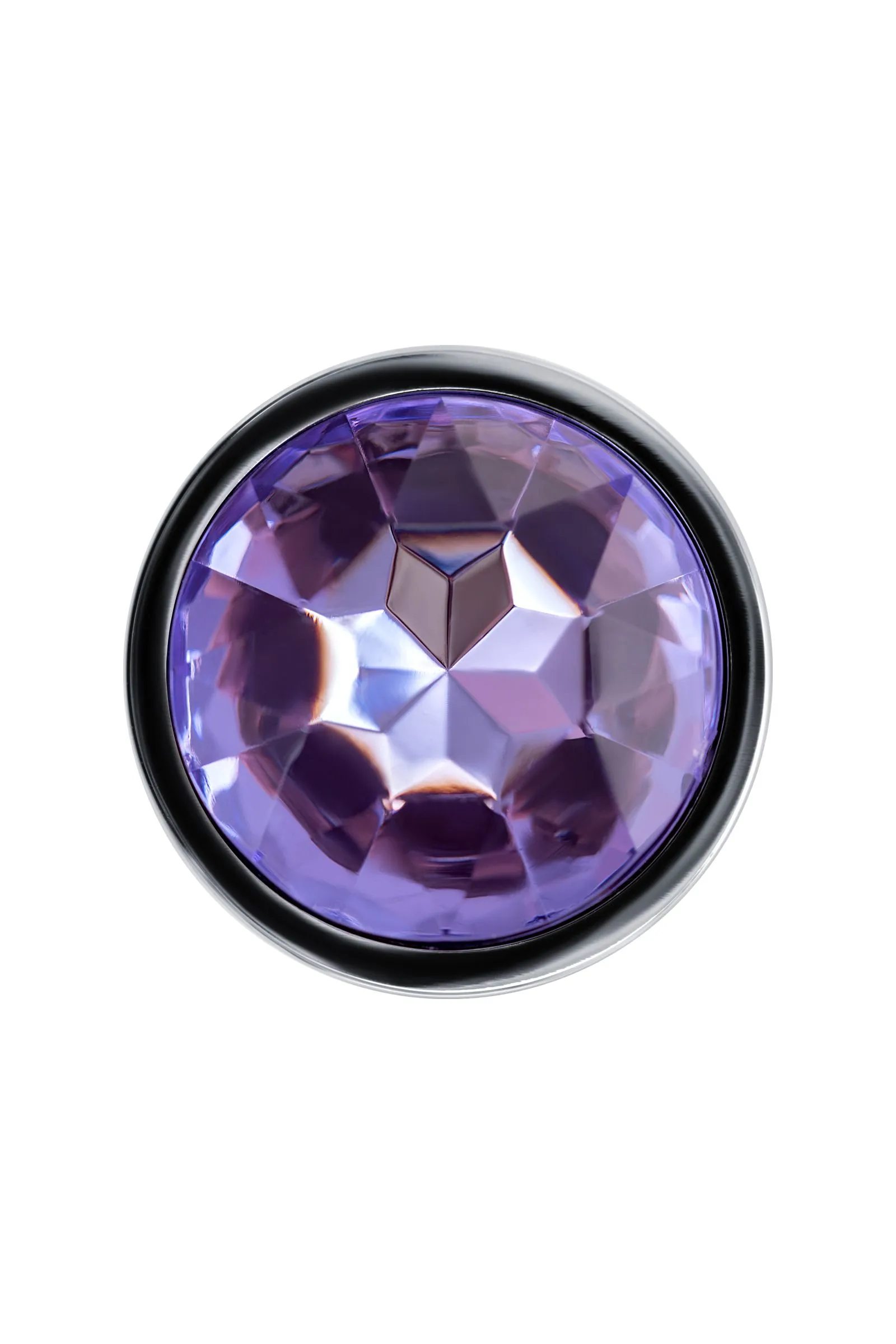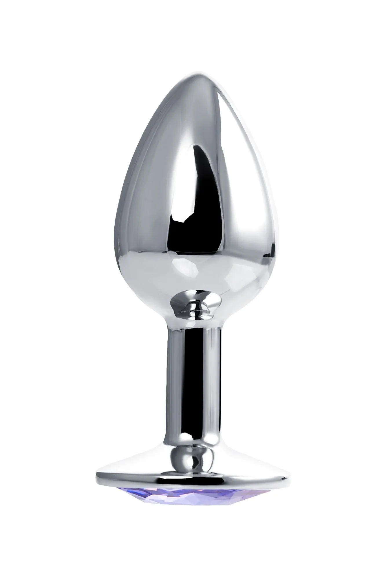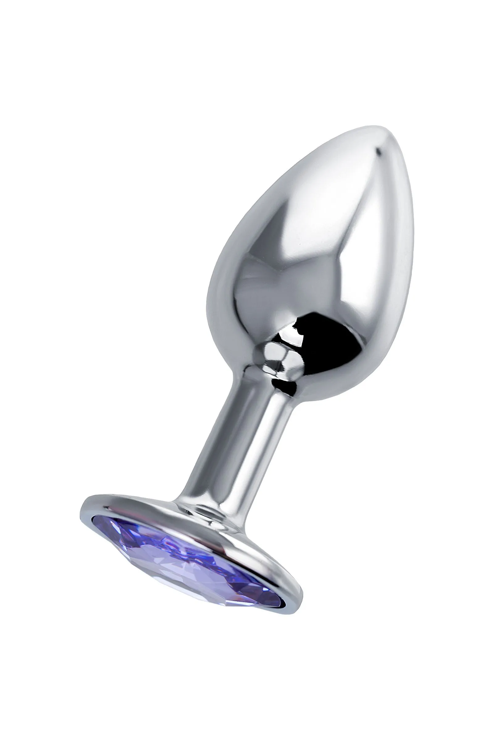 —Анальная втулка Штучки-дрючки, металл, серебряная, с фиолетовым кристаллом, 7 см, Ø 2,8 см, 50 г