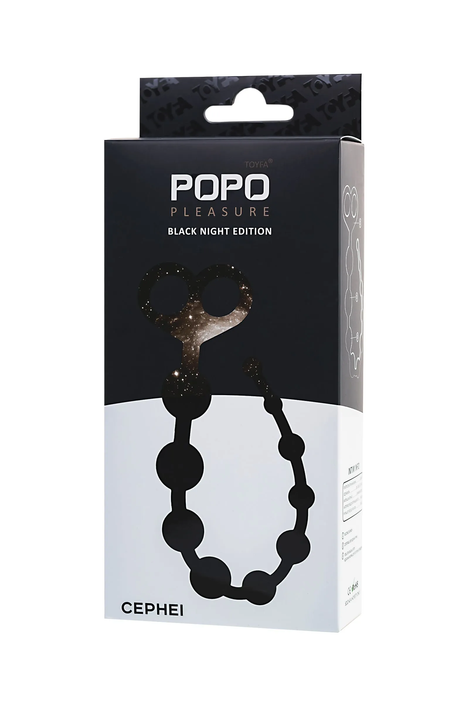 Анальные бусы TOYFA POPO Pleasure Cephei, водонепроницаемые, силикон, черные, 33,5 см, Ø 2,4 см