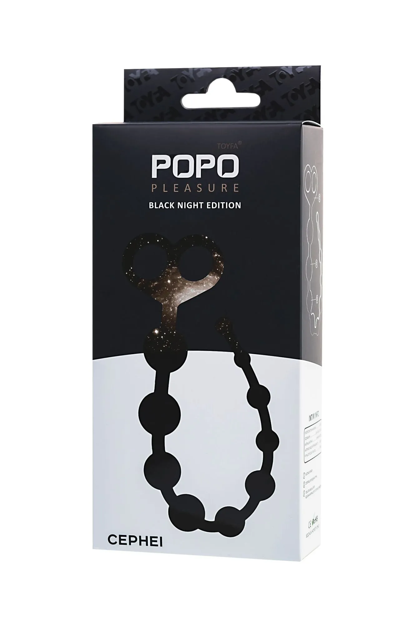 —Анальные бусы TOYFA POPO Pleasure Cephei, водонепроницаемые, силикон, черные, 33,5 см, Ø 2,4 см