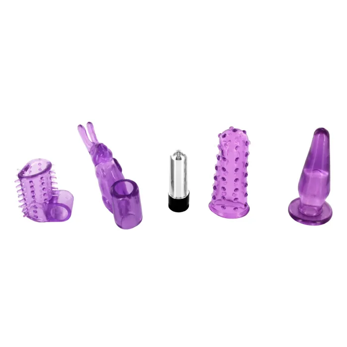 Набор насадок с миниатюрным вибромассажёром для совместных любовных игр. Он также отлично подходит для самостоятельной стимуляции, когда ваш партнёр далеко, но вы скучаете по его ласкам.