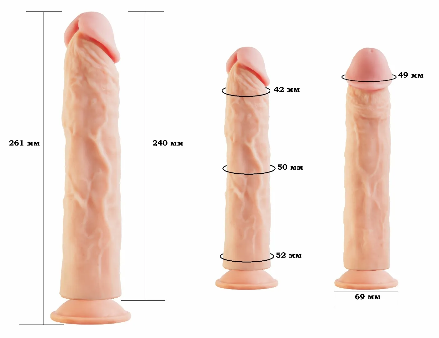 Фаллоимитатор на присоске имеет форму члена с ярко-выраженной головкой, рельефный, выполненный из сверхсовременного материала нового поколения, обладающий уникальными свойствами по пластичности, передающий эффект очень мягкой текстуры кожи. Характеристика: общая длина- 24,5 см, рабочая длина- 23 см, максимальный диаметр -5 см.