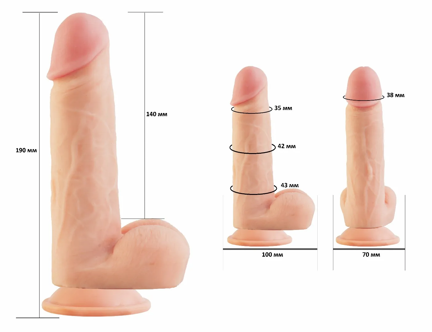 Фаллоимитатор на присоске имеет форму члена с ярко-выраженной головкой, рельефный, выполненный из сверхсовременного материала нового поколения, обладающий уникальными свойствами по пластичности, передающий эффект очень мягкой текстуры кожи. Характеристика: общая длина- 18 см, рабочая длина- 13,5 см, максимальный диаметр -4 см. Упаковка: прозрачная пленка.