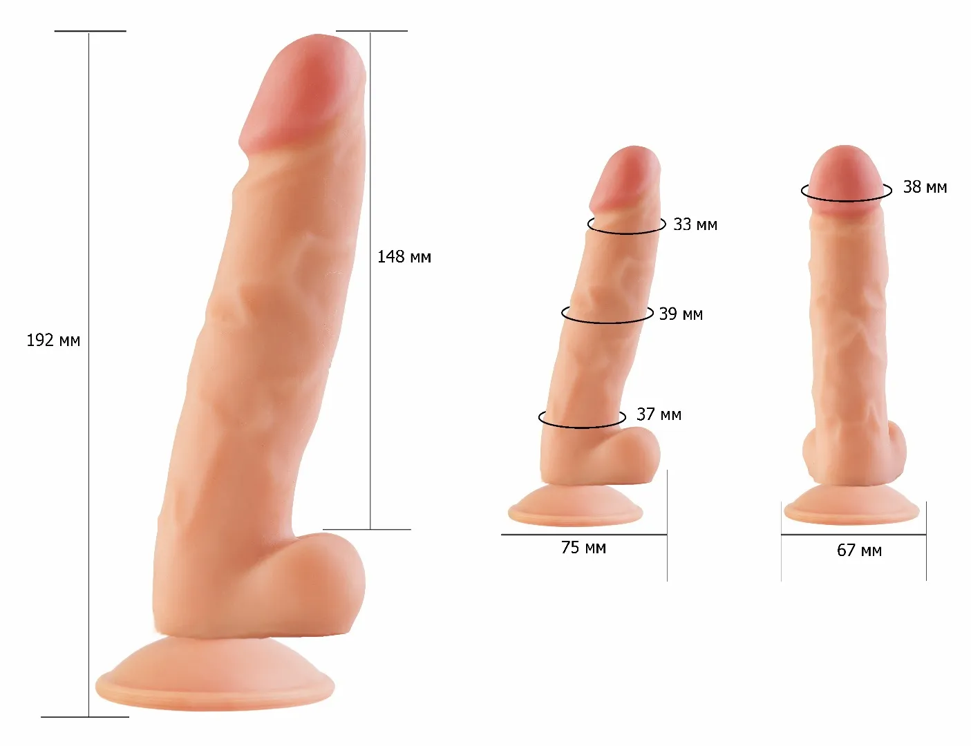 Реалистичный фаллоимитатор телесного цвета на присоске с ярко-выраженной головкой. Необычайно приятный, рельефный, с двуслойной структурой изделия. Материал термоэластопласт (tpr/tpi) передающий эффект мягкой реалистичной текстуры кожи, не имеет швов. Характеристика: без фталатов, общая длина – 19 см, рабочая длина- 14,5 см, максимальный диаметр- 3,7 см, изделие сертифицировано. Упаковка: картонная коробка с принтом.