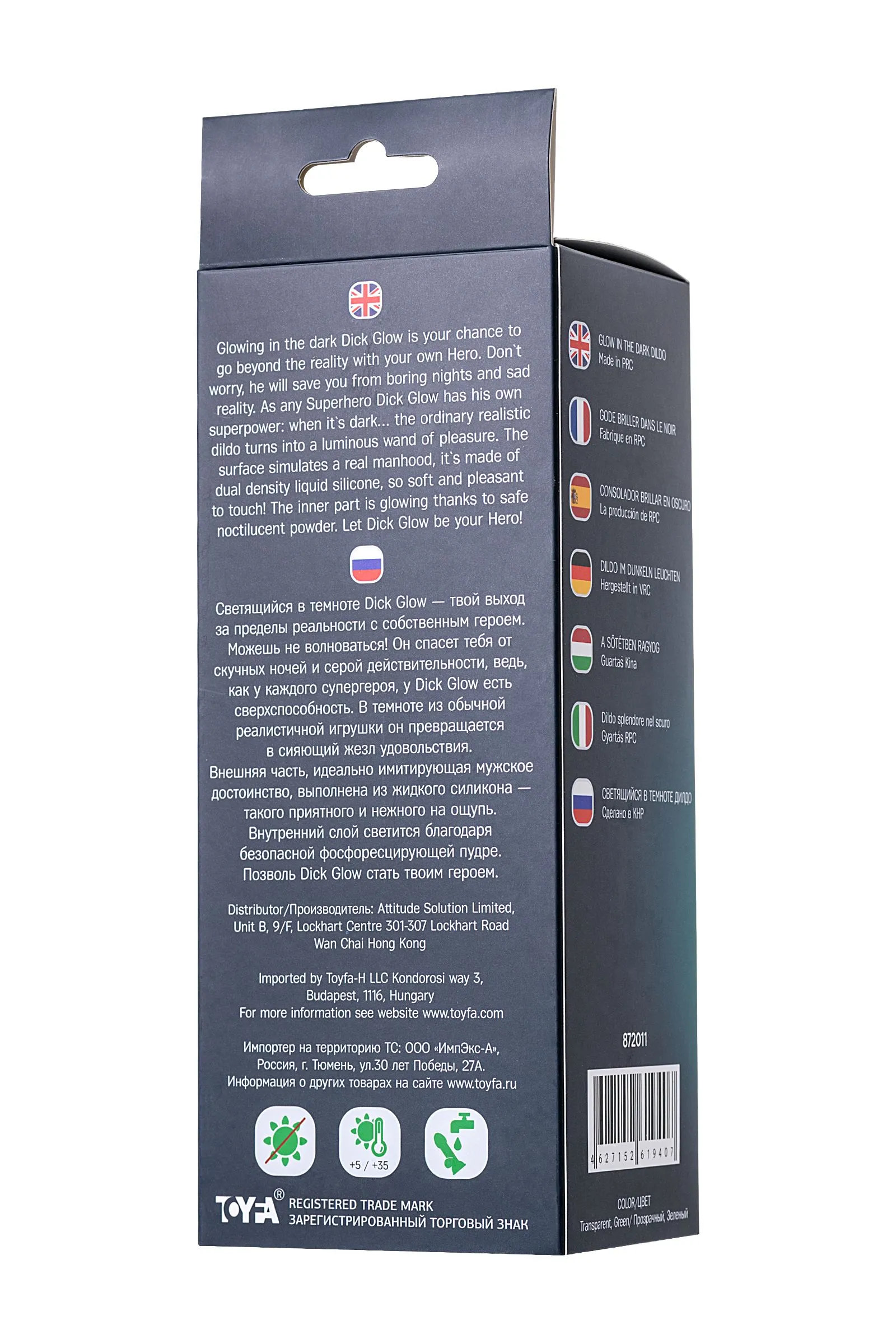 Светящийся в темноте Dick Glow — твой выход за пределы реальности с собственным героем. Можешь не волноваться! Он спасет тебя от скучных ночей и серой действительности, ведь, как у каждого супергероя, у Dick Glow есть сверхспособность. В темноте из обычной реалистичной игрушки он превращается в сияющий жезл удовольствия. Внешняя часть, идеально имитирующая мужское достоинство, выполнена из жидкого силикона — такого приятного и нежного на ощупь. Внутренний слой светится благодаря безопасной фосфоресцирующей пудре. Позволь Dick Glow стать твоим героем.