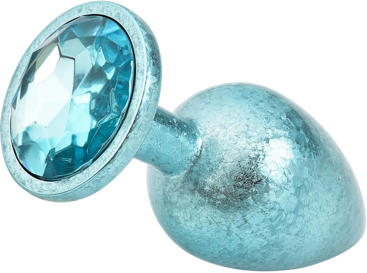 Литая анальная пробка имеет конусообразную форму и гладкую фактуру шлифованного металла. Легкий и прочный алюминиевый сплав гарантирует долговечность и гигиеничность. Крупный граненый кристалл в основании имеет специальное светоотражающее покрытие дна для усиления блеска и более яркого и красочного вида.