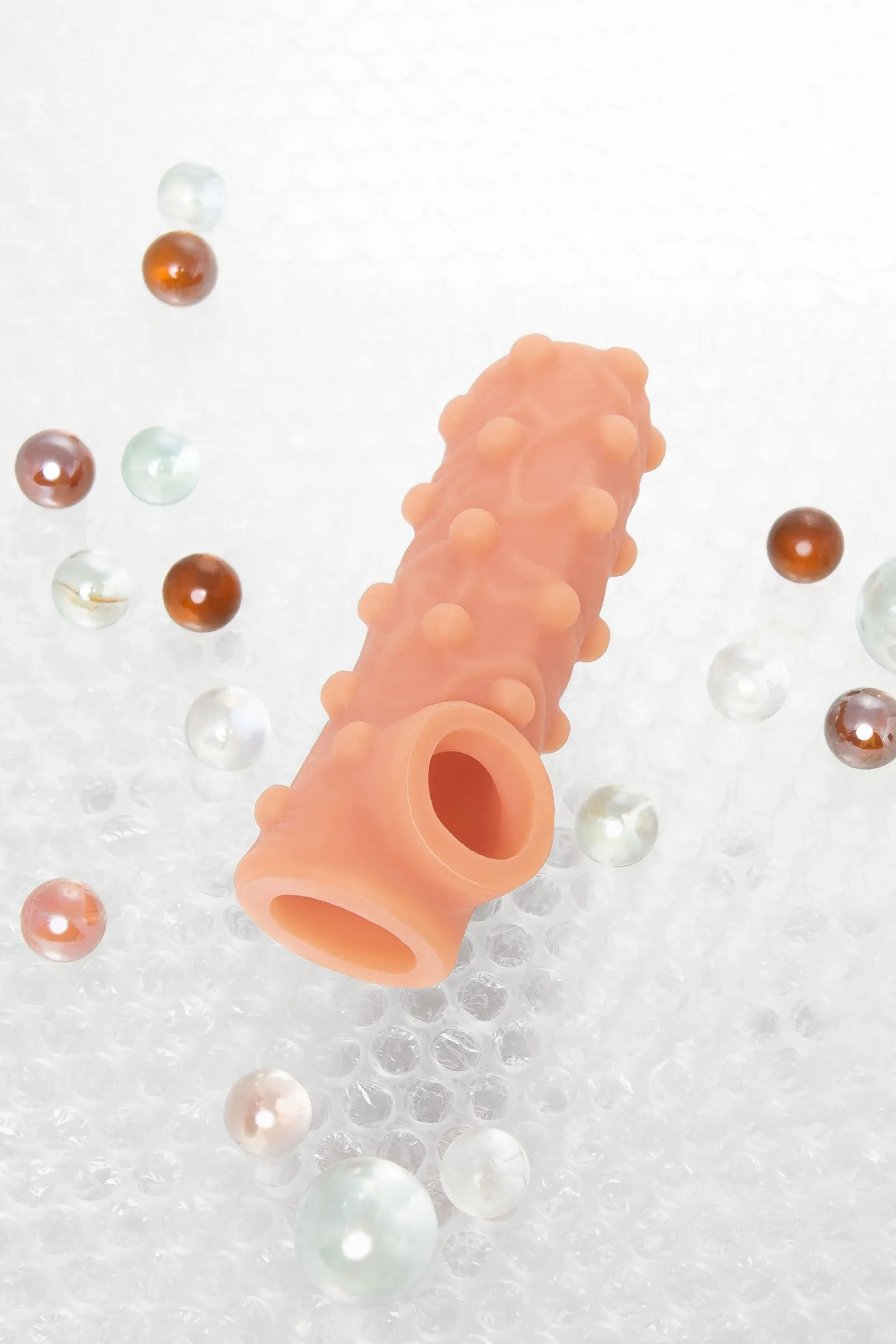 Открытая насадка с фантазийным рельефом от KOKOS предназначена воплотить фантазии о взаимном удовольствии. Реалистичная насадка на пенис - необходимый элемент для вашей сексуальной игры, если вы хотите максимально удовлетворить свою партнершу и сделать секс незабываемым. Откройте новые возможности: Увеличенный объем полового члена на 30% добавляет мужчине уверенности в своих сексуальных возможностях. Дополнительная стимуляция партнерши с помощью рельефа для яркого и насыщенного оргазма. Увеличение продолжительности полового акта у мужчины - задержка эякуляции, и наращивание темпа приближения оргазма у женщины. Насадка имеет форму “рукав”, плотно прилегает к пенису, создавая дополнительную толщину и оставляя головку открытой. Это позволяет сохранить чувствительность головки, задерживая эякуляцию. В основании есть отверстие для мошонки, с помощью которого вы надежно зафиксируете насадку на пенисе, не ограничиваясь в активных движениях. Насадка, за счет плотного облегания мошонки и головки, усиливает эрекцию. Выпуклый рельеф в виде многочисленных вен и внушительных шариков по всему стволу насадки очень хорошо стимулирует зону G, вход во влагалище и настойчиво ласкает чувствительные зоны. Вариативность стимуляции регулируется активным темпом движения вперед-назад и изменением угла проникновения. Дополнительный объем дарит то самое чувство наполненности, увеличивая поток возбуждения. Мужчина тоже будет ощущать стимуляцию за счет давления стенок влагалища на пенис. Супер эластичный материал быстро принимает температуру тела, отлично тянется, сохраняя при этом прочность. Нежное и мягкое покрытие такое же приятное на ощупь, как и человеческая кожа. Насадка сделана из высококачественного безвредного для человеческого организма материала, который прошел необходимые тестирования и сертификацию. Долговечность использования при соблюдении правил хранения и ухода за насадкой. Используйте с насадкой лубрикант только на водной основе. Длина: 12 см Диаметр:4,0 см Размер: M Цвет: телесный Материал: TPE Страна бренда KOKOS: Корея