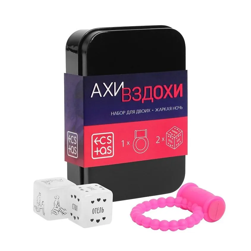 Как пользоваться кубиками? Очень просто! Всего в комплекте их два: один подскажет, как заняться сексом (в какой позе), а второй — где именно нужно это сделать. Бросайте кубики, получайте задание и наслаждайтесь друг другом! В комплекте также есть виброкольцо, которое можно использовать во время игр.