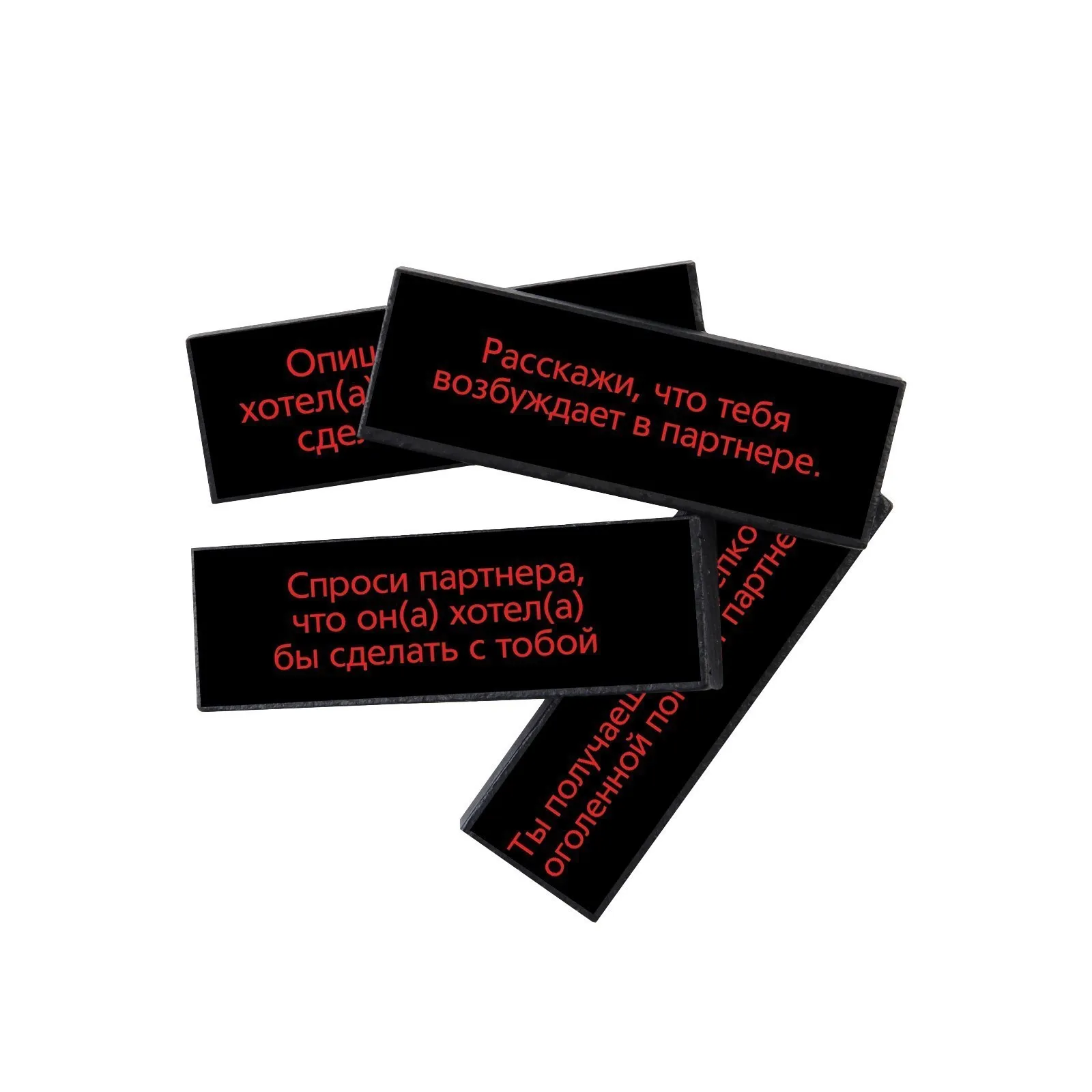 Постройте башню из брусков. Вытягивайте бруски из разных частей башни и выполняйте задания, написанные на брусках. Тот, кто обрушил башню, проиграл!