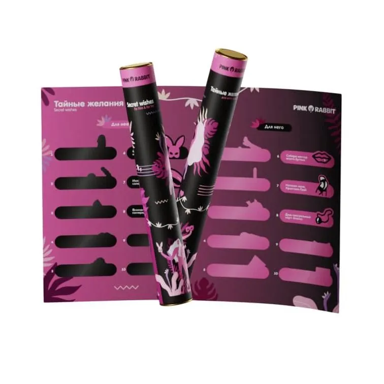 Узнайте лучше своего партнёра и внесите разнообразие в вашу интимную жизнь. С помощью скретч-плаката раскроайте новые грани Вашей половинки и получите массу впечатлений! Игра предлагает попробовать 10 пикантных желаний для Него и 10 желаний для Неё. Испытайте новые эмоции, экспериментируйте с заданиями. Просто сотрите защитный слой любой ячейки и действуйте!