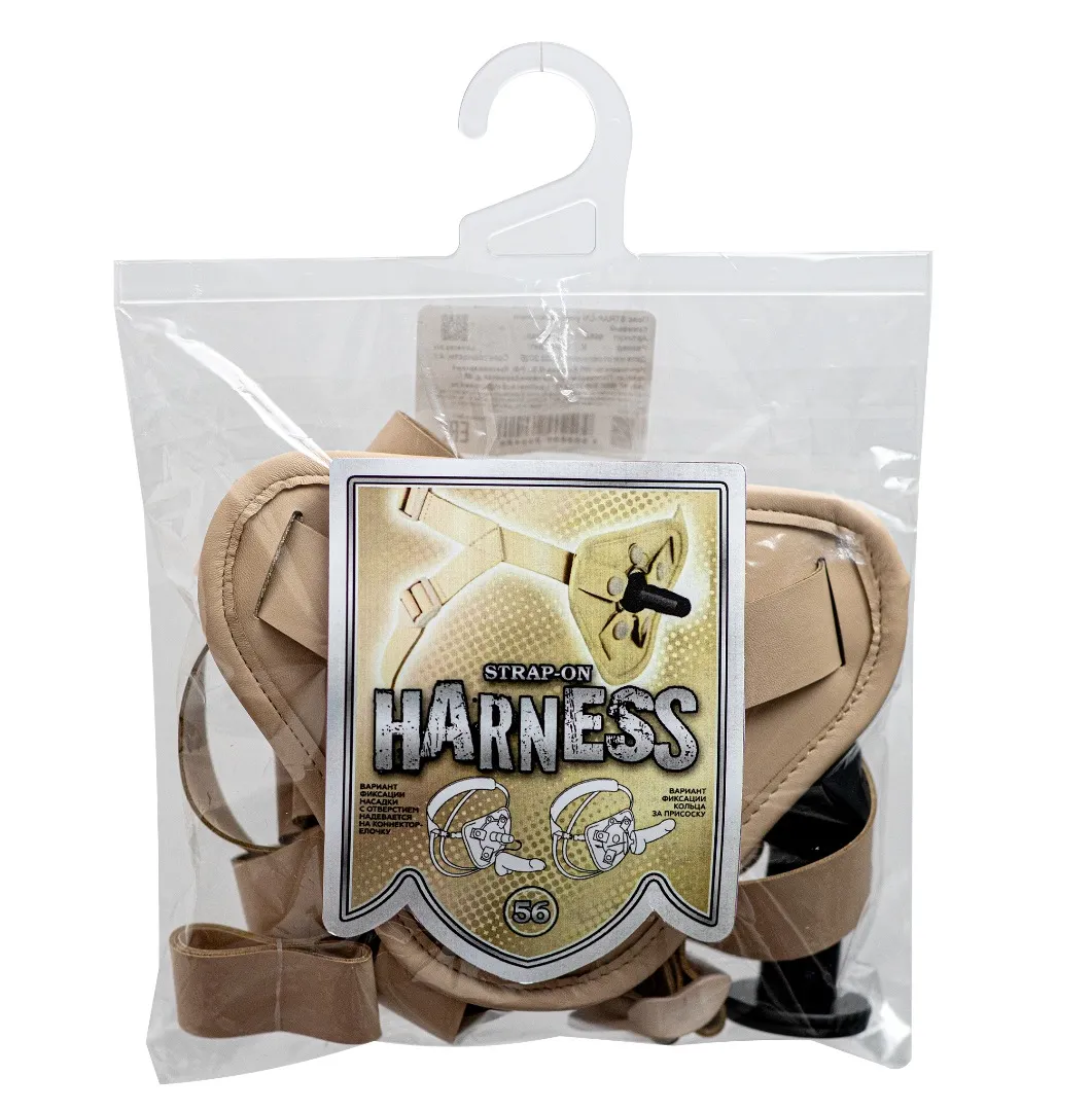 Пояс состоит из передней части в виде треугольника, на котором устанавливаются 2 типа коннекторов (фиксаторов). Один фиксатор в виде кольца (3 размера колец можно докупить отдельно). Другой - в виде пластикового штырька, раскручивающегося на две детали. Одна деталь - сделана в виде шайбы и резьбового соединения, другая – в виде «елочки» цилиндрической формы. В поясе есть кармашек с кнопкой и отверстие, в которое помещается деталь в виде шайбы, резьбой в отверстие. Затем с внешней стороны прикручивается вторая деталь «штырек - елочка». Можно зафиксировать кольцом практически любой фаллоимитатор на присоске. Для смены колец необходимо расстегнуть кнопки ремней вокруг отверстия и поставить подходящее по размеру эластичное кольцо. На поясе есть два пришитых узла для прикрепления ремней и их регулировки по длине и натяжению.