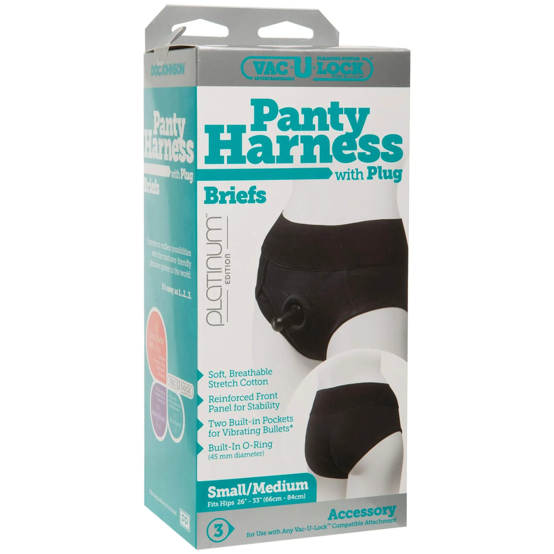 Трусики сделаны из хорошо тянущегося хлопка, их комфортно носить, легко снимать и надевать. Спереди есть специальный штырек для насадки, который подойдет для любой игрушки с системой Vac-U-Lock. Эти трусики по-настоящему универсальны - у них есть крепление O-Ring диаметром 45 мм. и два кармашка, идеальных для хранения Ваших любимых вибропуль или чего-то другого.
