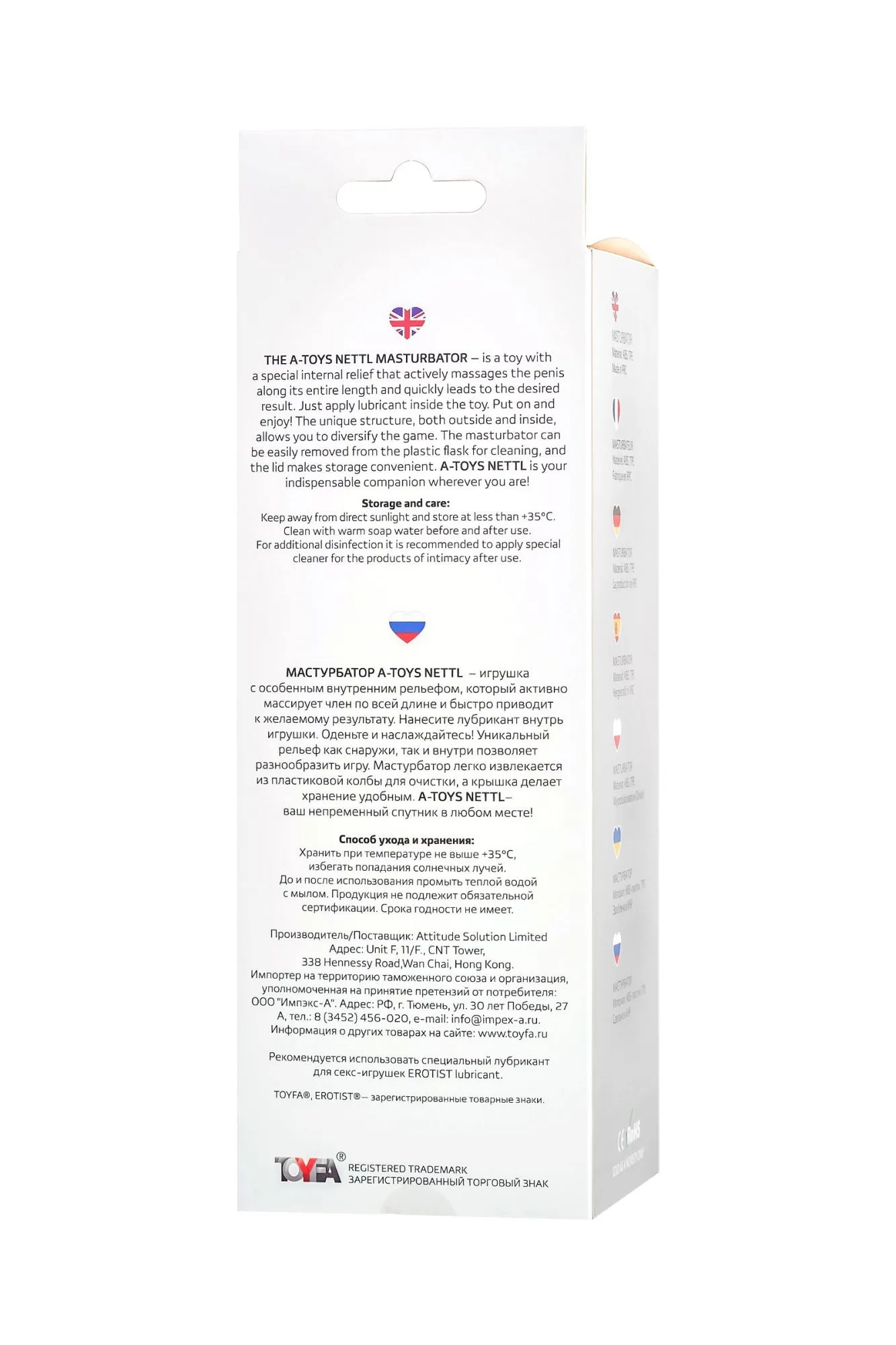 Мастурбатор A-Toys Nettl – игрушка с особенным внутренним рельефом, который активно массирует член по всей длине и быстро приводит к желаемому результату. Нанесите лубрикант внутрь игрушки. Оденьте и наслаждайтесь! Уникальный рельеф как снаружи, так и внутри позволяет разнообразить игру. Мастурбатор легко извлекается из пластиковой колбы для очистки, а крышка делает хранение удобным. A-Toys Nettl - ваш непременный спутник в любом месте! Общий размер:18,5 см Рабочий размер: 15 см