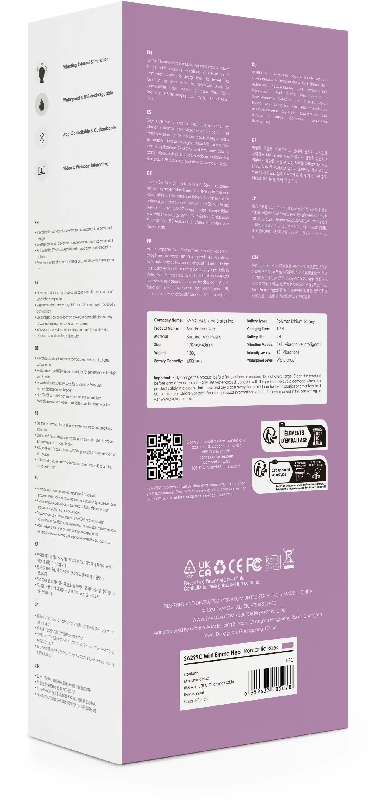 Интерактивность: Синхронизируйте Mini Emma Neo с приложением SVAKOM и создавайте собственные режимы, управляйте игрушкой на расстоянии или синхронизируйте её с эротическими видео.