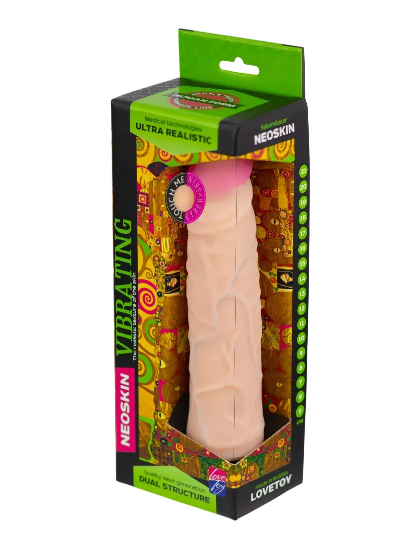 Вибромассажёр телесного цвета. Имеет форму члена с ярко-выраженной головкой. Необычайно приятный, рельефный, выполненный из материала «Неоскин» , передающий эффект мягкой реалистичной текстуры кожи, не имеет швов. Виброэлемент расположен по всей длине изделия. Степень вибрации регулируется при помощи кнопки, расположенной в основании. Работает от 2АА батареек (нет в комплекте). Общая длина – 23 см, рабочая длина-20 см, максимальный диаметр - 5 см. Упаковка: картонная коробка с принтом.
