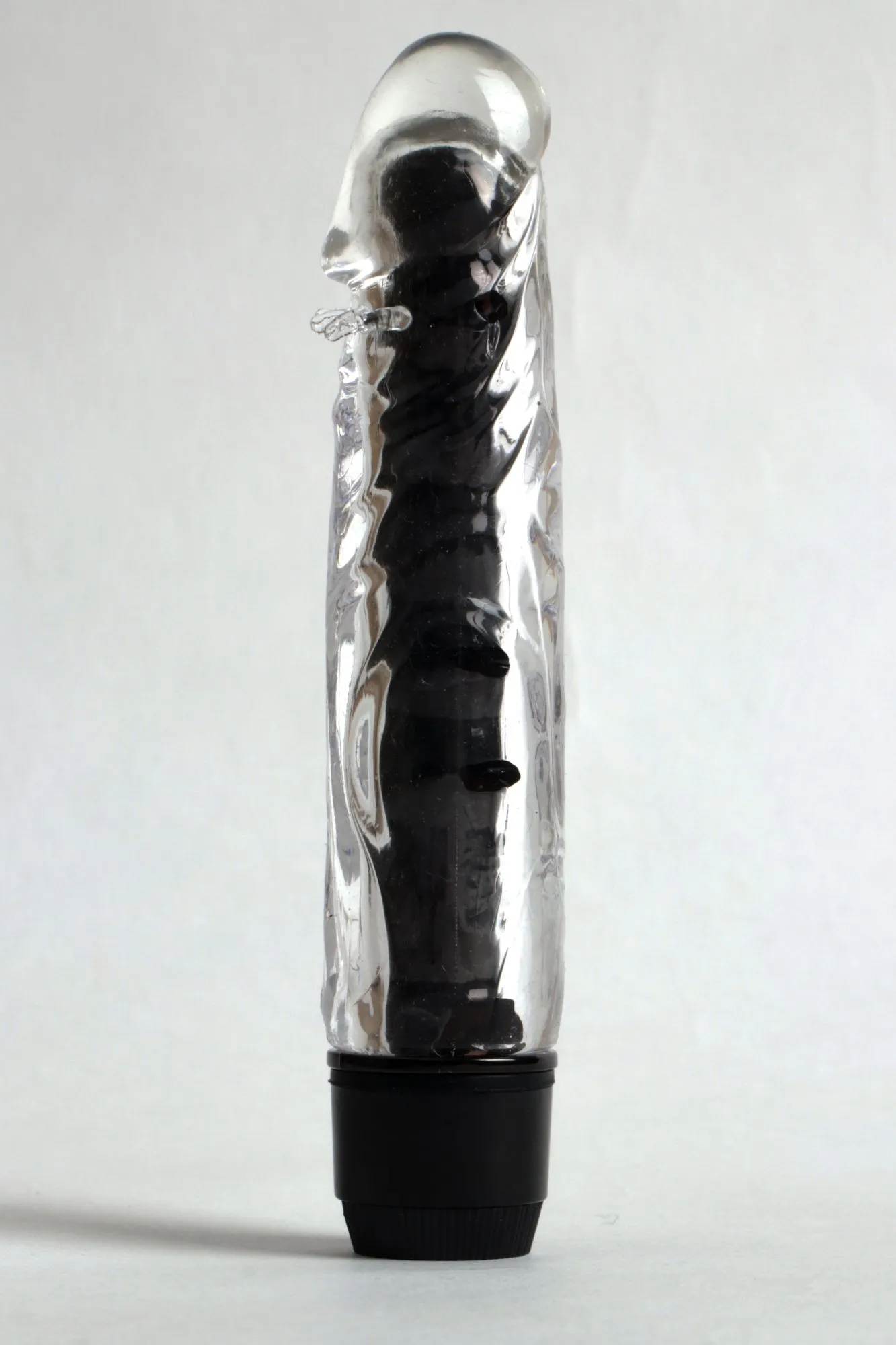 Черный вибратор, имеет классическую форму. Необычайно приятный, прозрачный материал, вибратор оснащен дополнительными пупырышками под головкой для особенных ощущений. Степень вибрации регулируется при помощи кнопки, расположенной в основании. Работает от 2-х батареек АА (нет в комплекте). Общая длина – 17,5 см, максимальный диаметр -3,5 см.