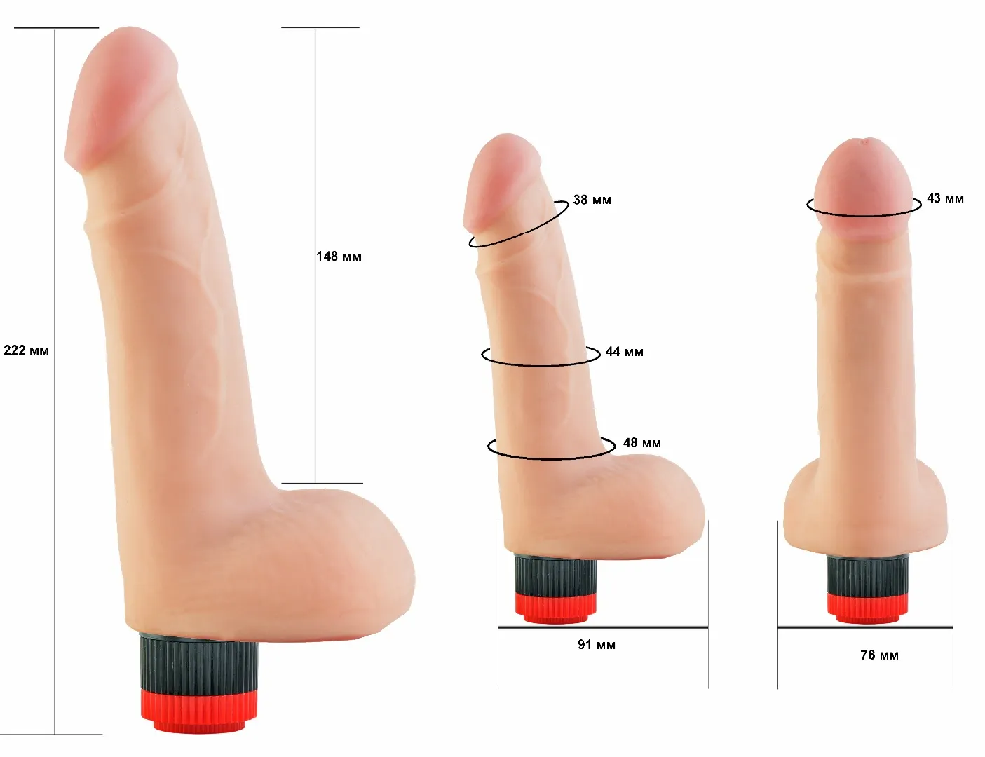 Вибратор-реалистик телесного цвета. Имеет форму члена с ярко-выраженной головкой и мошонкой, рельефный, выполненный из материала неоскин, не имеет швов. Скорость вибрации регулируется кнопкой у основания изделия. Общая длина – 21,5см, рабочая длина-15,5см, максимальный диаметр -4,5 см,без запаха, упакован в пленку