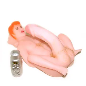 Вибратор в виде фигуры мужчины. Имеет ярко выраженную головку и прорисованные вены для наилучшей стимуляции. В комплекте идет лубрикант, виброяичко и жесткий фиксатор для поддержания вибратора в одном положении. Имеются волосы на груди и мошонке.Материал изготовления TPE (гель). Пульт проводной, работает от 4-х батареек типа АА (нет в комплекте). Общая длина игрушки 34 см, общая щирина 24 см, размер полового члена 24 см, рабочая длина 17,5 см, диметр 5 см. Упаковка - картонная коробка с принтом.