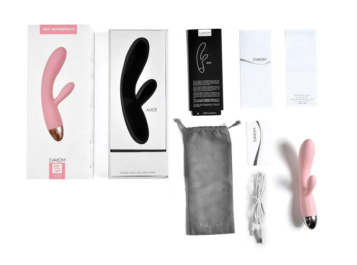 Alice - это элегантный вибратор от компании Svakom, выполненный из приятного на ощупь медицинского силикона. В этой игрушке два вибрирующих элемента находятся в головке и в клиторальном отростке, что не может не отражаться на ощущениях от вибрации.