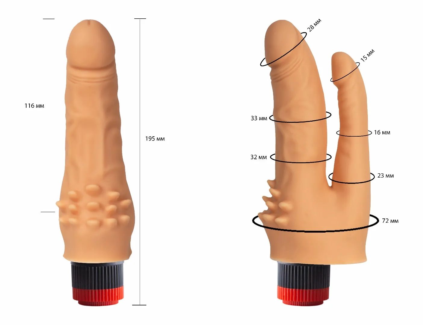 Описание: вибромассажер-реалистик в ламинате 114800ru Вибромассажер 114800 – это эротический аксессуар отечественного производителя, предназначенный для двойного проникновения. Он имеет форму двух соединенных в основании половых членов с хорошо прорисованными головками, а также обладает участком с мягкими шипами для дополнительной стимуляции. Чтобы отрегулировать эротический аксессуар, достаточно воспользоваться колесиком. Вибромассажер в таком исполнении станет прекрасным дополнением к любой коллекции интим-изделий и подарит в два раза больше удовольствия! Характеристики вибромассажер-реалистик в ламинате 114800: цвет – телесный, материал – поливинилхлорид, длина – 17 см, диаметр основного фаллоса – 3,2 см, диаметр анального отростка – 2,1 см, производитель – Биоклон (Россия).