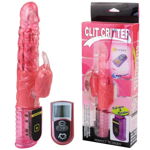 Дистанционный Хай-Тек Clit Criter розового цвета с функцией вращения ствола и клиторальным стимулятором в виде зайчика. Работает от 4-х батареек типа ААА (в комплект не входят). В комплект входит пульт и батарейка к пульту типа 23А. Общая длина 26 см, рабочая длина 14 см, диаметр 3,5 см, длина стимулятора 7 см, диаметр стимулятора 3 см. Пульт работает от 1 батарейки 23А (есть в комплекте)