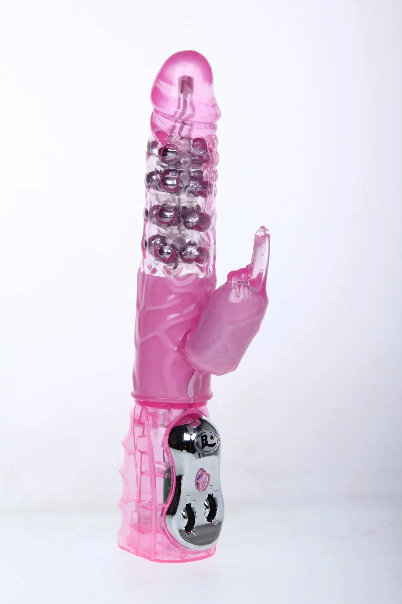 Мультискоростной рельефный вибромассажер цвета фуксии вращения ствола и мощным клиторальным стимулятором в форме зайчика. Имеет несколько скоростей вращения ствола, с возможностью менять направление, несколько скоростей вибрации стимулятора, все функции удобно регулируются колесиками на ручке. Вращение осуществляется при помощи четырех рядов металлических шариков , расположенных внутри изделия. Очень мягкий, имеет не пористую структуру. Водонепроницаемый. Материал изготовления - ПВХ-гель. Работает от четырех батареек типа АА ( в комплект не входят). Рабочая длина 14 см, максимальный диаметр 4 см, длина стимулятора 8 см, диаметр 3 см. Упаковка: блистер.