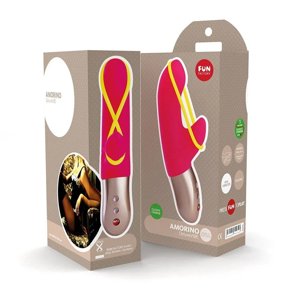 Amorino - это инновационный вибратор с силиконовой лентой, натянутой между закругленными кончиками для стимуляции половых губ. При необходимости неоновую желтую ленту легко снять.