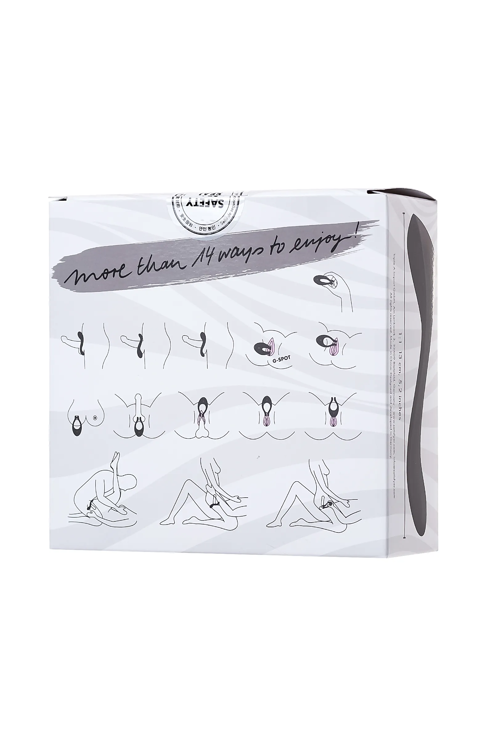 Многофункциональный стимулятор для пар Satisfyer Partner Multifun 2 придает интимной жизни буйство ощущений — он может заменить сразу 4 секс-игрушки, радует 14-ю вариантами применения и предлагает более ста сногсшибательных комбинаций, которые только и ждут, пока вы откроете их для себя. Неважно, будет ли Multifun 2 сверху, снизу или сбоку — этот соблазнительный умелец искусно встроится во все ваши любовные игры. Он равномерно распределит каждый из десяти режимов вибрации с помощью трех моторов с независимым управлением и с легкостью синхронизируется под ваше удовольствие. Попробуйте! Стимулятор для пар. Во время интимной сессии установите широкую сторону девайса на клитор, а «ушки» направьте на мошонку или член партнера. Волнующий массаж — лучшая прелюдия перед громким оргазмом. Массажер внешних эрогенных зон. Проведите трепещущими кончиками игрушки по шее, груди, соскам, бедрам, клитору, половым губам, мошонке, члену партнера и другим чувствительным местам. Увидите, они ответят на нежные импульсы мгновенным возбуждением. Вибратор для точки G. Пульсирующие «пальчики» Multifun 2 имеют идеальную форму и длину для пробуждения загадочной G-точки. Просто введите их внутрь и отдайтесь наслаждению. Игрушка для экспериментов в душе. Стимулятор обладает полностью водонепроницаемой поверхностью, с ним вы легко сможете взбодрить свой утренний душ или расслабиться в вечерней ванне с ароматной пенкой. Кольцо для члена. Наденьте девайс на член партнера. Массажер порадует плотным обхватом, а вибрация усилит эмоции от стимуляции и приведет к более яркой разрядке. Согласитесь, любовь — это когда всем делятся друг с другом, так почему бы не поделиться оргазмом от Multifun 2?