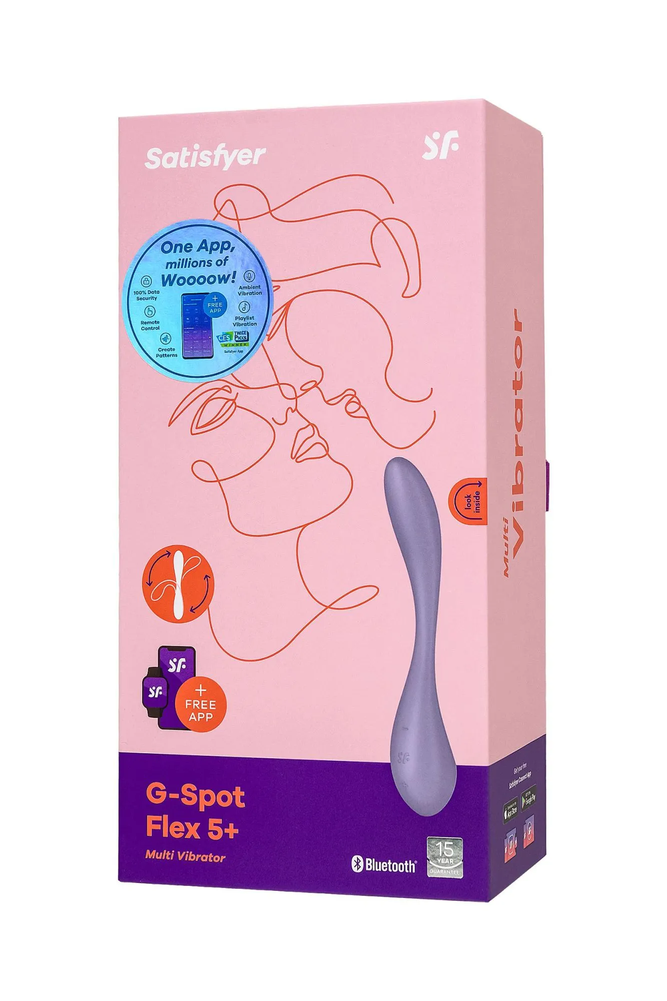 Мультифункциональный и супер гибкий вибратор G-Spot Flex 5 от Satisfyer нацелен на стимуляцию самых чувствительных и потайных эрогенных зон. G-Spot Flex 5 имеет полностью гибкую шейку. Регулируемый угол стимуляции позволяет зафиксировать вибратор так, чтобы зона G получила максимальное соприкосновение с вибрирующим наконечником. G-Spot Flex 5 в сочетании с фантазией проведет вас по пути неземного блаженства в сольной игре или прелюдии с партнером. Элегантный дизайн идеально разработан для воздействия на точку G – для интенсивной стимуляции и комфортного расположения в руке. Деликатное воздействие на все известные и еще неизвестные эрогенные зоны обеспечивает упругая продолговатая форма ствола. Изящный кончик точно ласкает область зоны G и подходит для стимуляции внешних эрогенных зон. Интуитивно понятное управление тремя кнопками прямо на корпусе игрушки, которые ложатся точно под пальчики. Мощный надежный мотор стимулирует наслаждение с помощью 12 предустановленных паттернов вибрации. Испытайте удовольствие по-настоящему с бесплатной функцией управление при помощи смартфона с поддержкой Bluetooth через приложение Satisfyer Connect, доступное на Android и iOS. Создавайте собственные уникальные режимы вибрации, существенно расширив возможности предустановленных режимов. Девайс способен вибрировать даже в такт музыке. Satisfyer Connect не имеет границ – передавайте управление удовольствием партнеру даже на большом расстоянии. Шелковистое силиконовое покрытие — фирменный знак Satisfyer, тактильно нежный и приятный на ощупь. G-Spot Flex 5 позаботится о самых чувственных прикосновениях даже в ванной и душе. Благодаря водонепроницаемости IPX7 игрушку можно погружать под воду до 30 минут. Чтобы получить максимум удовольствия и сохранить материал в наилучшем виде, рекомендуется пользоваться качественной смазкой на водной основе. После использования обязательно очищайте стимулятор теплой водой со специальными бактерицидными спреями для интимных товаров. Особенности: Анатомически совершенный – регулируемый угол стимуляции. Простое управление тремя кнопками. 12 режимов вибрации. Нежный сиреневый цвет и мягкий, эластичный силикон без запаха, без аллергенов и вредных для здоровья веществ. 100% водонепроницаемый - IPX7. Перезаряжаемый, магнитный USB-кабель. 15 лет гарантии от производителя.