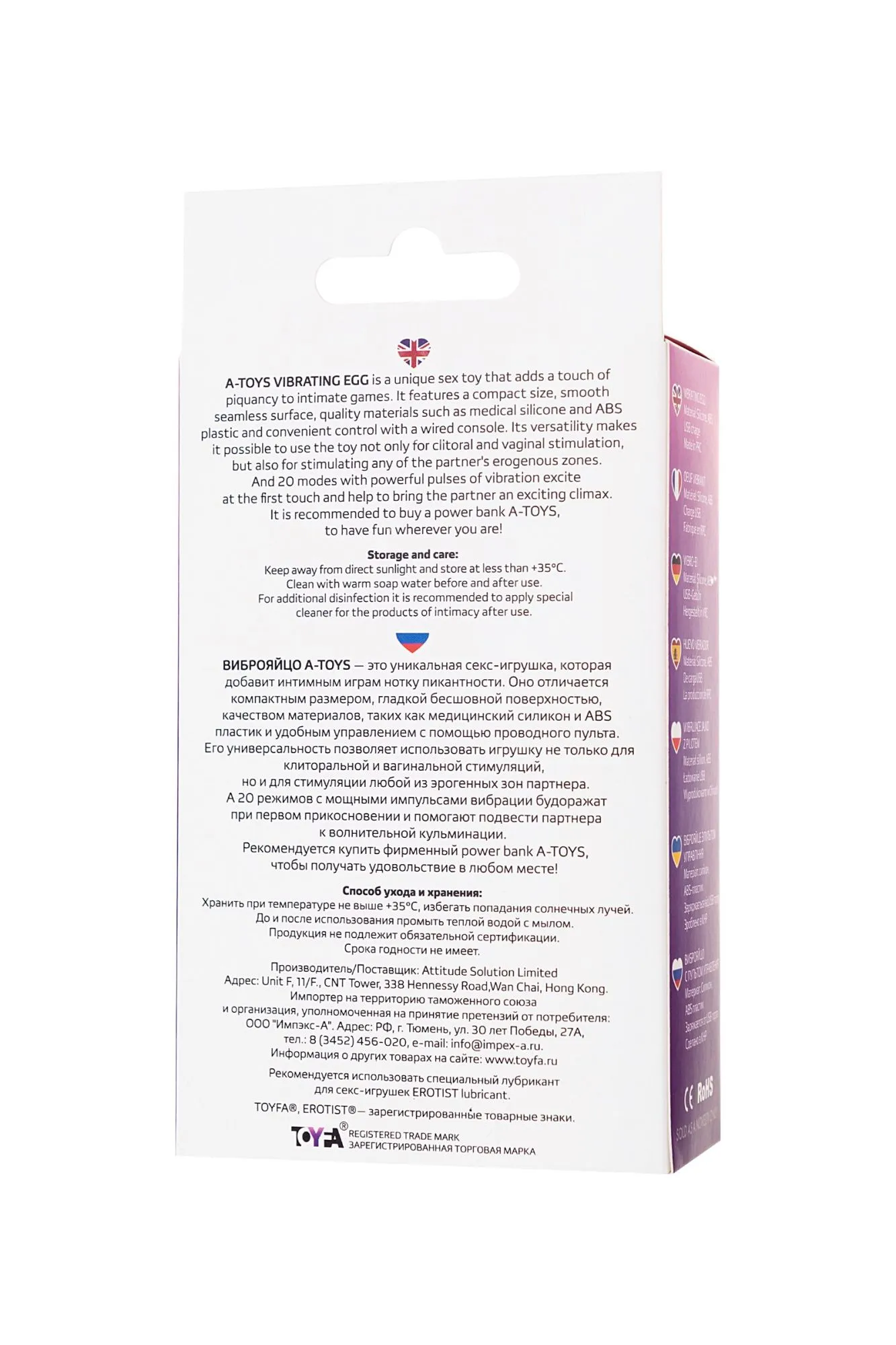 Виброяйцо A-Toys Shelly — это уникальная секс-игрушка, которая добавит интимным играм нотку пикантности. Оно отличается компактным размером, гладкой бесшовной поверхностью, качеством материалов, таких как медицинский силикон и ABS пластик и удобным управлением с помощью проводного пульта. Его универсальность позволяет использовать игрушку не только для клиторальной и вагинальной стимуляций, но и для стимуляции любой из эрогенных зон партнера. А 20 режимов с мощными импульсами вибрации будоражат при первом прикосновении и помогают подвести партнера к волнительной кульминации. Рекомендуется купить фирменный power bank TOYFA, чтобы получать удовольствие в любом месте! Максимальный выходной ток источника питания — 1 А.