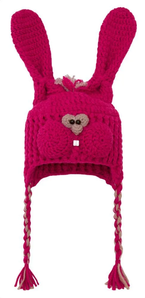 Очаровательная розовая шапка в виде кролика связана из шерсти и акрила. Она будет не только согревать Вас зимой и осенью, но и сможет послужить отличным украшением во время праздника или карнавала. Веселая шапка с забавной мордочкой кролика и длинными ушками умилит окружающих и привлечет к Вашей персоне много внимания. В ней Вы всегда будете выглядеть стильно и выделяться из толпы не только благодаря интересному дизайну, но и яркому цвету.