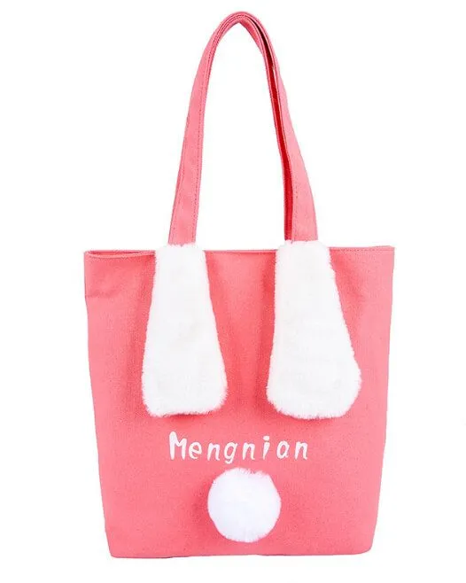 Удобный розовый шоппер с двумя ручками и пушистыми ушами.
