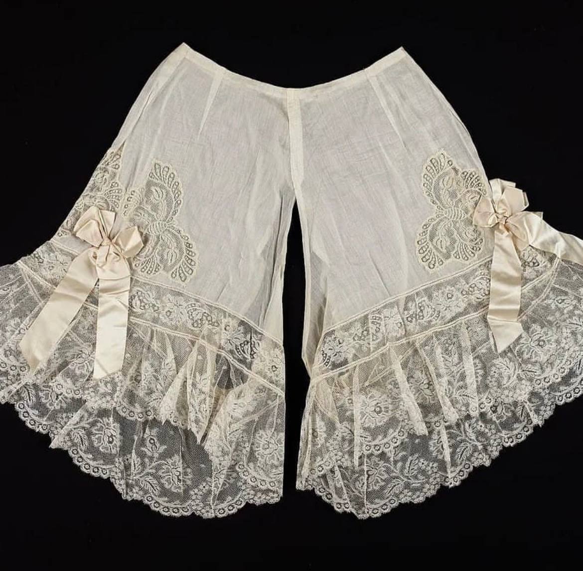 Да-да, все дело в разрезе в шагу, как вы уже догадались. Женское белье, каким мы знаем его сейчас, в прошлом было куда интереснее. На рубеже 18-19 веков женские панталончики только входят в моду. Изначально они состояли из двух штанин, которые соединялись одним лишь поясом, потом верхнюю часть среднего шва решили сшивать, уж больно не надёжно было крепление - иногда дамы теряли половину панталон. Но разрез оставался. Представьте стандартный набор женского белья тех лет: нижние рубашки, нижние юбки, панталоны и все это перетягивалось корсетом, а сверху ещё сорочка или юбка. Простите, при необходимости, дамам было невозможно снять панталоны, не сняв предварительно все остальное "обмундирование". Страсть к корсетам не давала никакой возможности к комфортной жизни. Только в 20 веке, когда Пуаре освободил прекрасную половину человечества от ношения корсетов, то самое отверстие в панталонах зашили.